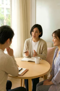 面談室のテーブルに、ひとりの女性が静かに座っていました。