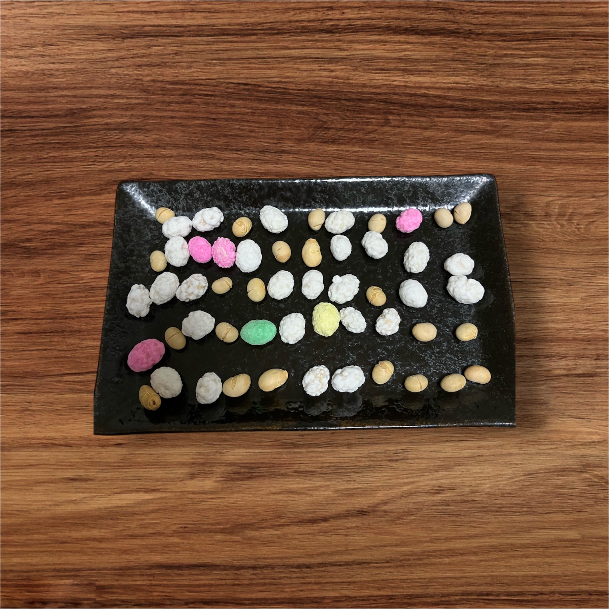 歳の数ほど豆を並べてみるとなかなかの量です!(~~‘チビチビ頂こうと思います。